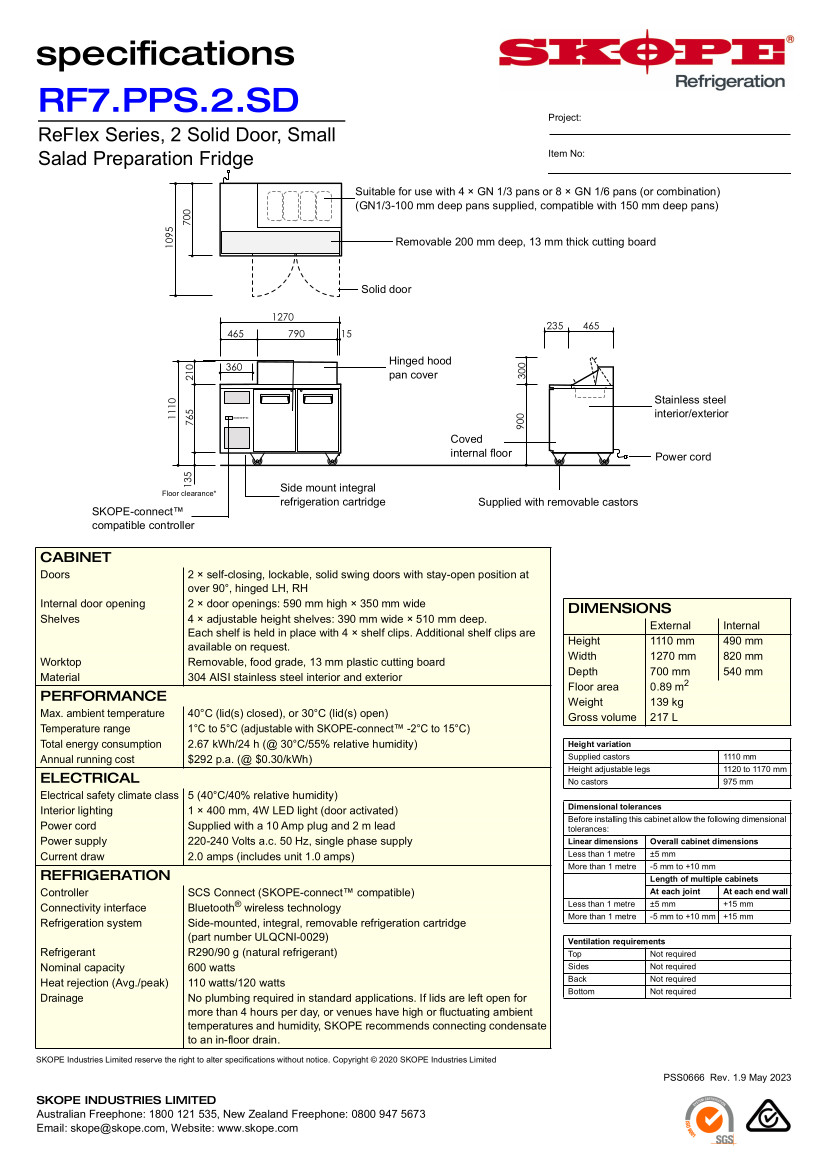 SKOPE REFLEX RF7 2 DOOR HORIZONTAL PREPARATION FRIDGE